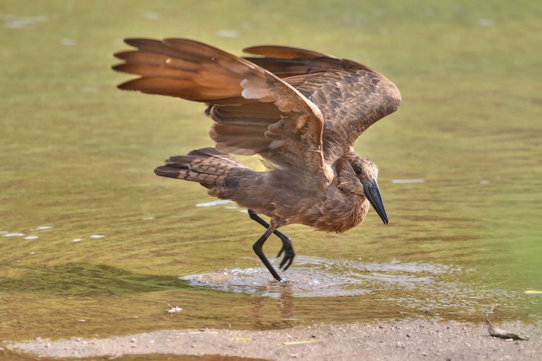 So, you’ll see a Hamerkop on the edge of a lake in the savanna or along sandbanks. They will occupy more forested habitats, but this isn’t their preference, and again, it will only be where there’s water.